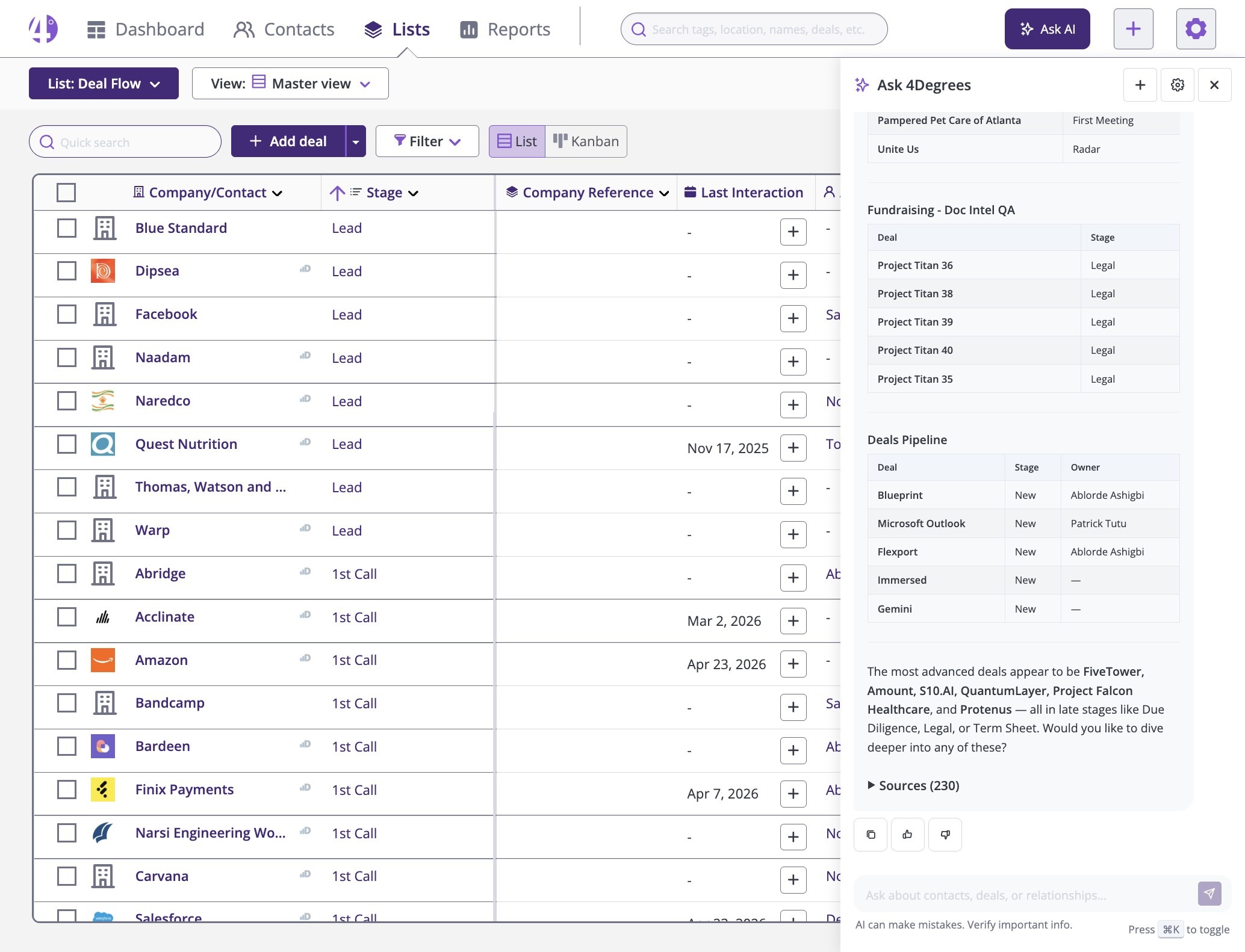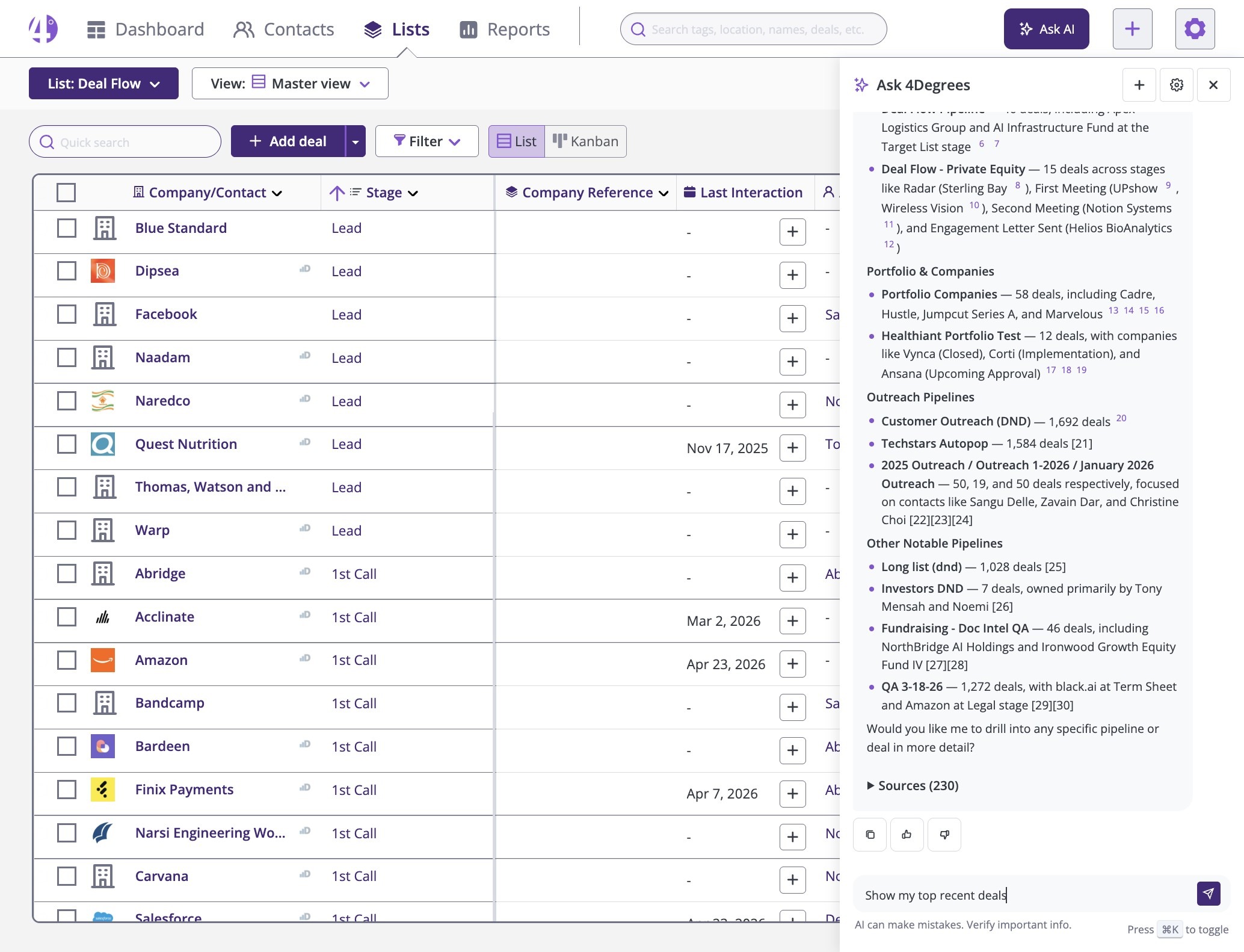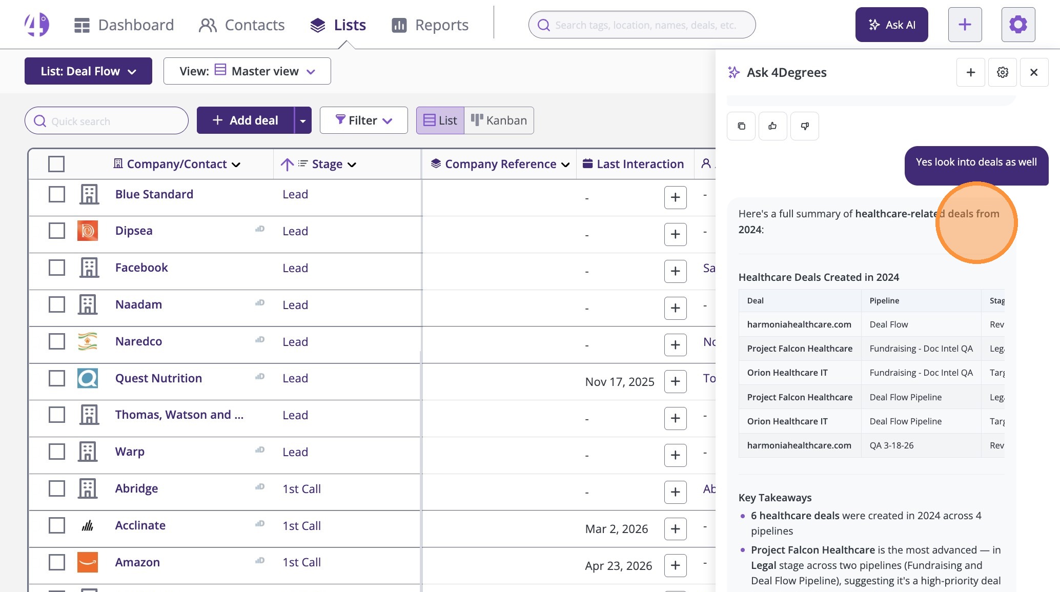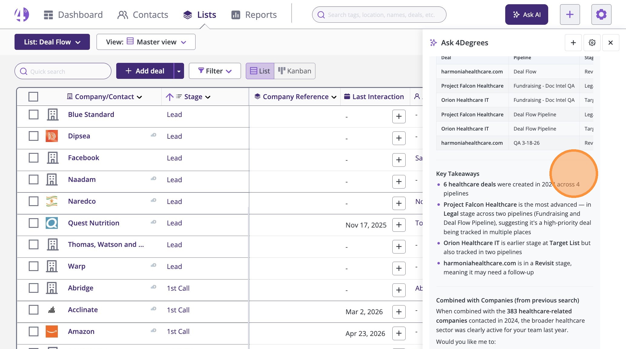 Discover how the 4Degrees AI Assistant can instantly answer your CRM questions, speed up your workflows, and simplify your data analysis.