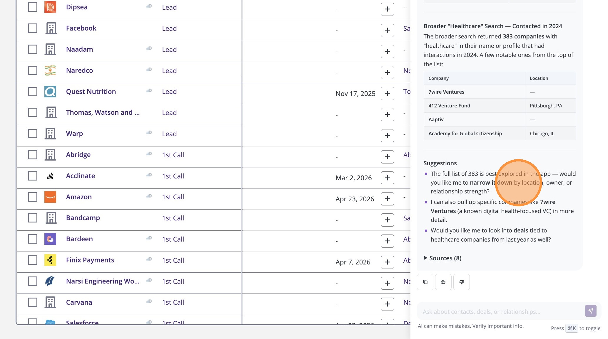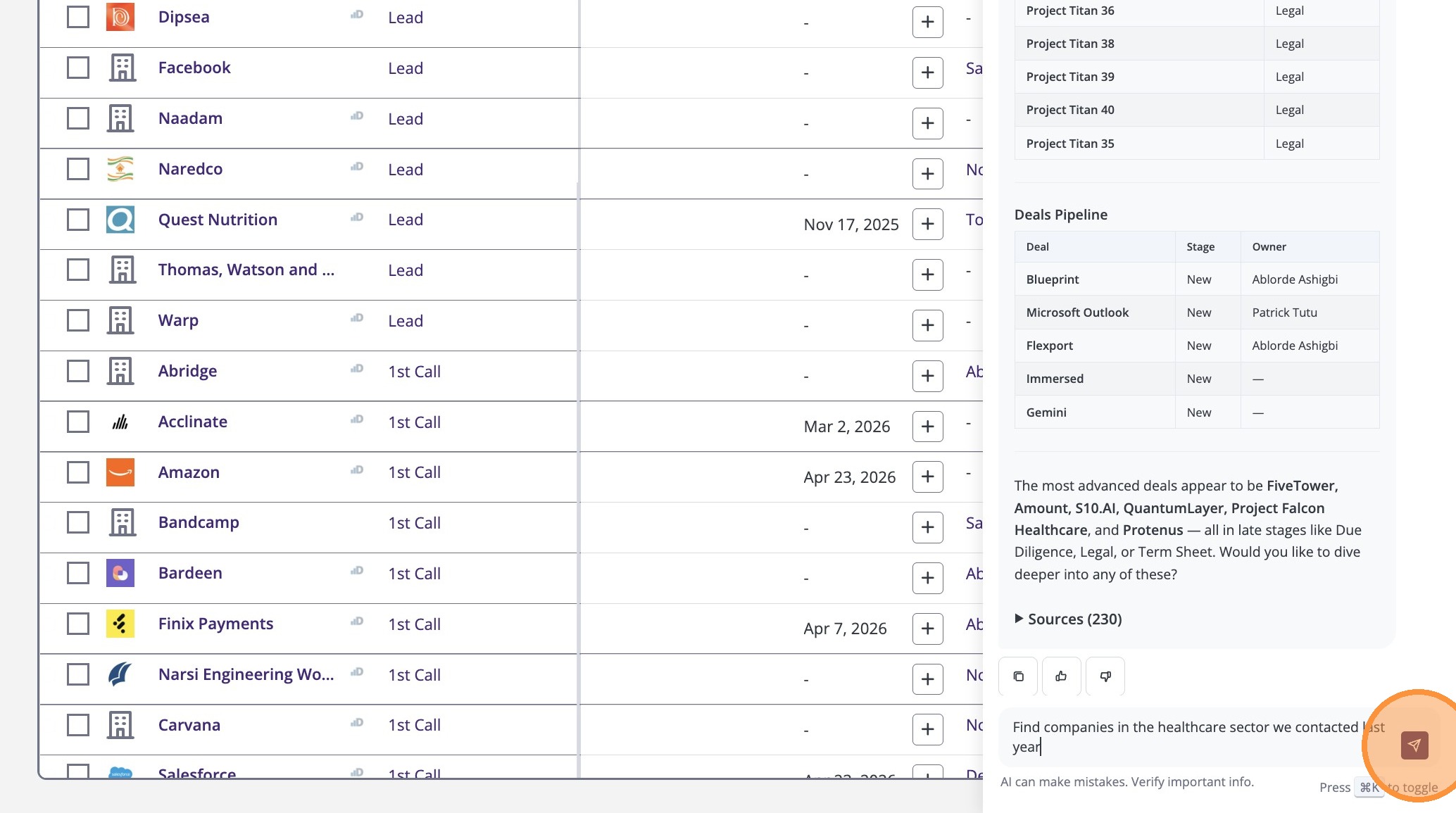 9. The assistant provides a summary—like this overview of healthcare deals.